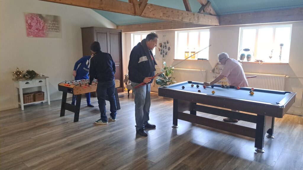 - Spellen: we spelen regelmatig bingo (met mooie prijsjes!) en Rummikub. We hebben ook een biljarttafel en sjoelbak.